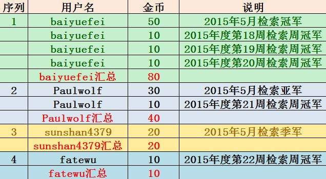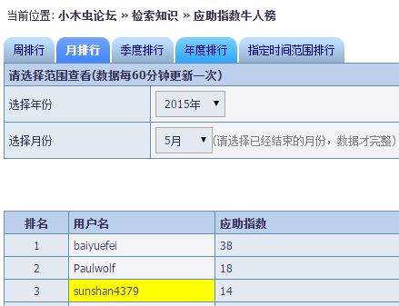 【检索知识】版2015年5月应助达人月冠军和周冠军获奖会员名单