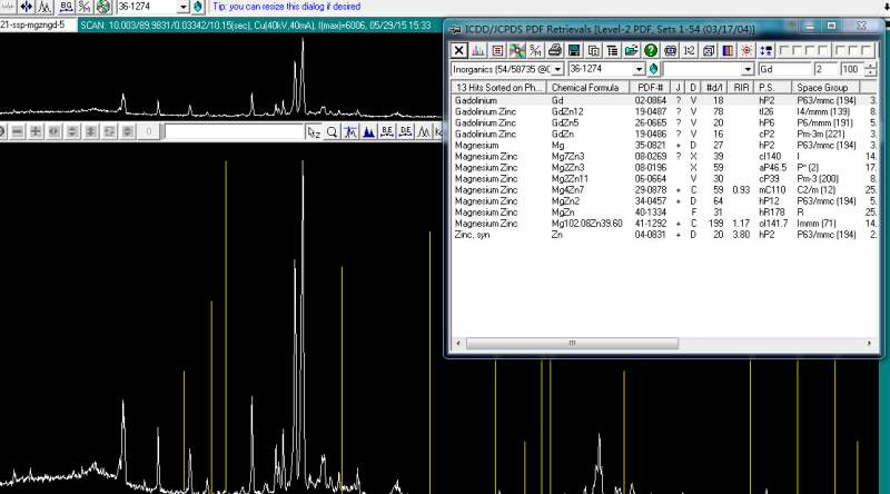 各位大神,本人研究的是Mg合金准晶,做了一批MgZnGdY的XDR样品,但是我的Jade里面没有MgZnGd的PDF卡片,我看到文献里面别人都标出来了,不知道是什么原因,请各位大神帮忙!