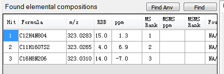 各位液质大神,我的样品成分复杂,想分析里面的主要成分,通过液质联用得到了一些质谱数据,但是不是很会分析。求助各位大神帮忙 二级质谱图已上传,通过peakview软件分析得到可能的分子式,见下图 ESI源,负离子 谁能告诉我这个到底是什么物质呢 二级质谱图(HCD6M.png 可能的分子式.png [ Last edited by archbishop on 2015-6-9 at 15:35 ] |