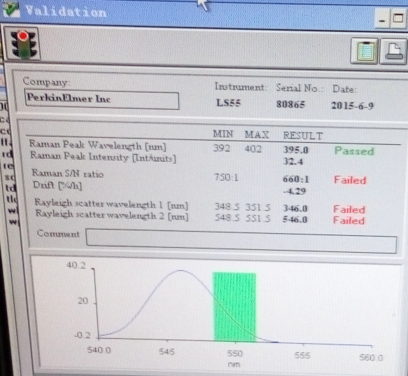 各位大神,关于PE LS55荧光仪自检,最后两项failed,偏差2nm左右