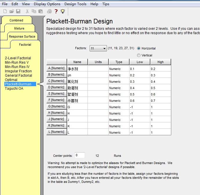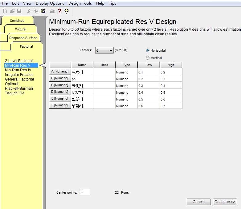 用design expert8.0.6,想做五因素分析,但感觉软件有点问题。所以发上来给用过的前辈看看,问题出在哪里。