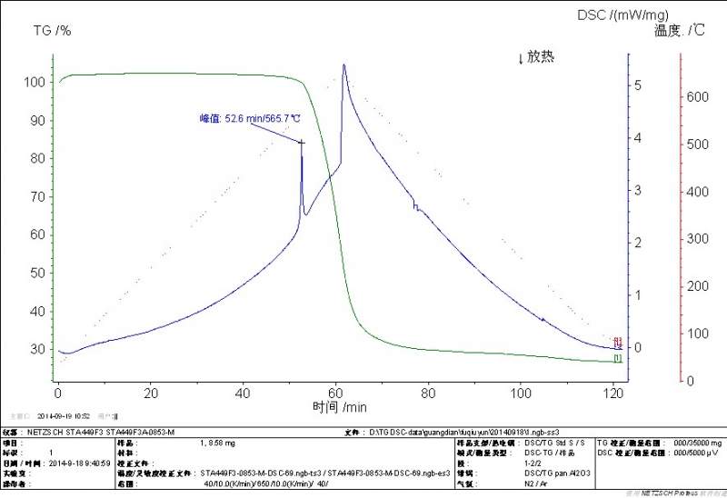想知道一种三元化合物的熔点和凝固点,测试了TG-DSC,但是只得到熔点的吸热峰,而没有发现凝固点的放热峰。 测试人员告诉我,是因为升温过高导致样品分解或挥发,请问如果我仅仅升温到熔点附近,然后降温能得到凝固点相关信息吗? 如果TG-DSC不能获得相关信息,TG-DTA可以吗? TG-DSC.jpg |