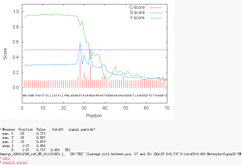 第一次用SignalP预测,看不懂,帮忙看下信号肽是到那个位置,谢谢!!!