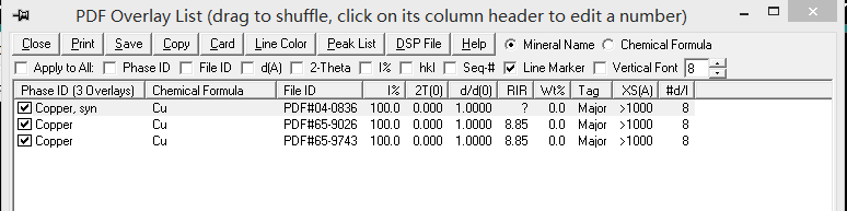 求助JCPDS标准卡片数据