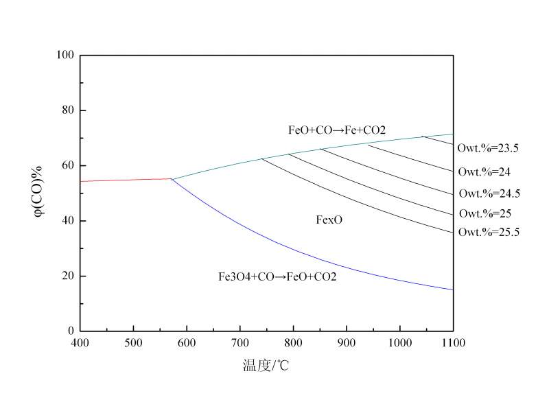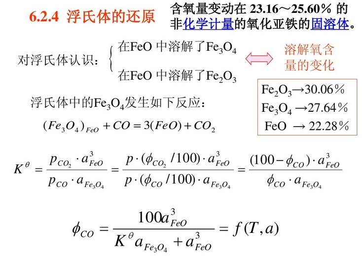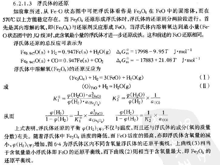 关于CO还原氧化铁平衡图中的浮氏体还原