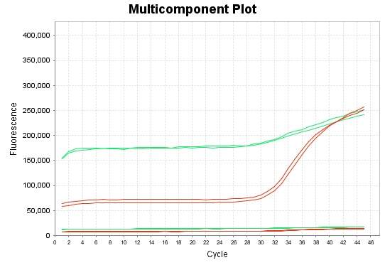 最近做探针法的QPCR遇到了一个棘手的问题,求助高手指点。之前实验室用的是在生物公司买的试剂,扩的还不错,但是现在老板为了省钱,让我们自己配试剂做,结果惨不忍睹啊。相同的引物和探针,自己配的体系扩增曲线几乎是一条直线,并且起始荧光强度比对照高很多,不知道有没有相同经历的同学,求指点啊。 Amplification Plot.jpg Multicomponent Plot.jpg |
