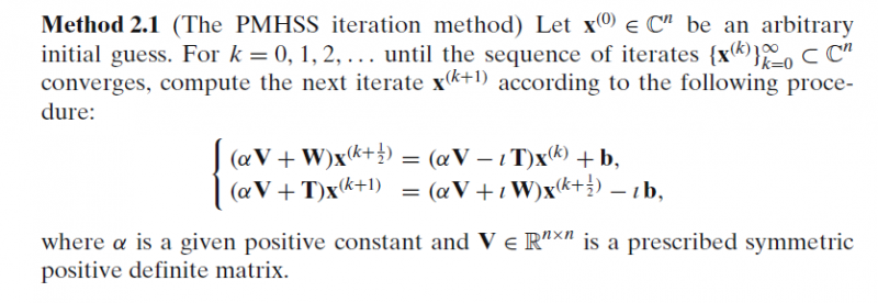 对于Ax=b,编写gmres时可以用x=Gmres(A,b,restart,tol,maxit,M);那么对于图1的二步迭代法呢,先将二步迭代法写成Ax=b的形式(A=F-G)?有没有编写过的人呢? 1.png 2.png |