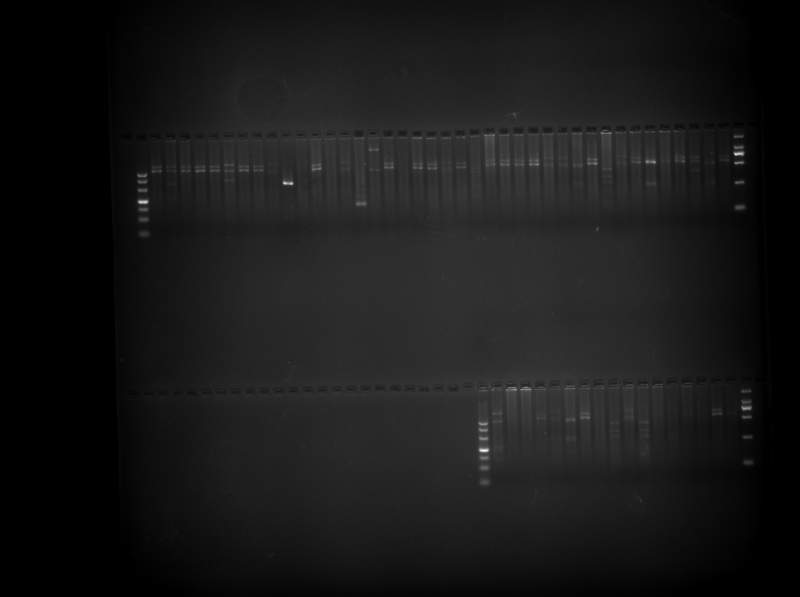 你的菌落PCR貌似都不对呀,无论产物大小,菌落PCR的带应该是很单一很亮才对的啊 好的菌液PCR图是这样的 链接: http://pan.baidu.com/s/1dD0Hxlf 密码: g5qn |