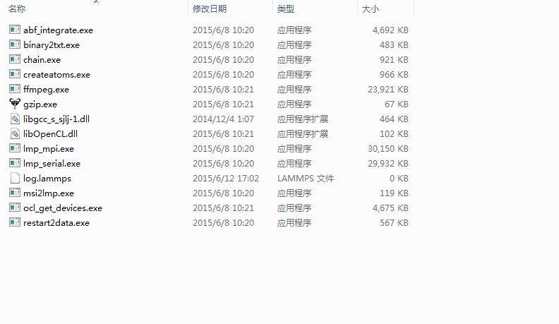 最近因为想要自己模拟材料的色散关系,在看完“windows版LAMMPS的安装与运行详细步骤http://muchong.com/html/201111/3485223.html”帖子后,按照步骤安装window下串行,在官网上下载到最新的lammps-32bit-latest...可是找不到lmp_win_no-mpi.exe???我解压,安装的每个文件里找了很久,只在bin下面找到了其他的exe命令,并没有lmp_win_no-mpi.exe,请各位大侠帮忙解惑一下 360截图20150612174817451.jpg |