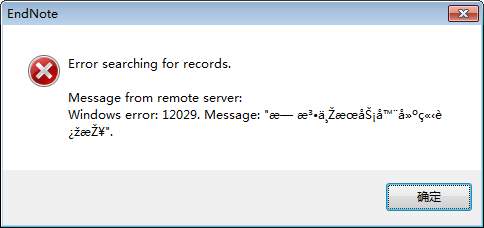 endnote online search(web of science)的时候出现 windows error:12029