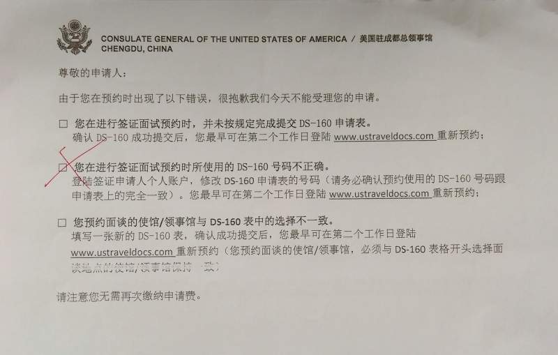急死了,美签面签时发现申请表号码填错了要求重新预约