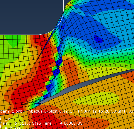 模拟一个铝合金冲压的,2维轴对称的,改了好多次,每次算到一半就网格畸变了,好难过啊,ALE自适应也用了,频率为1,真不知问题出在哪,谁能解释一下,谢谢啊! 网格变形.PNG 捕获2.PNG 捕获3.PNG |