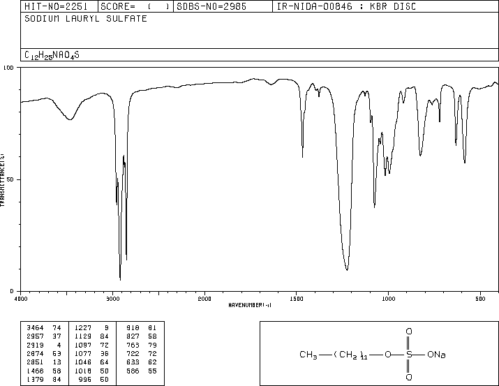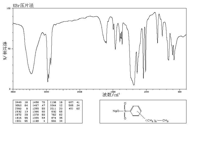 十二烷基苯磺酸钠和十二烷基硫酸钠上的红外光谱上的对应基团