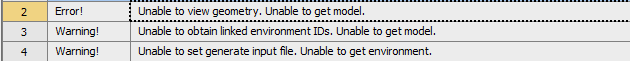 单向稳态计算,当对model进行更新的时候,出现如下图所示的错误提示,请问我需要怎么解决呢?Unable to view geometry. Unable to get model.Unable to obtain linked environment IDs. Unable to get model.Unable to set generate input file. Unable to get environment.