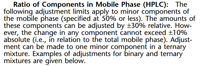 关于液相有关物质分析方法确认中方法耐用性的流动相比例的调整