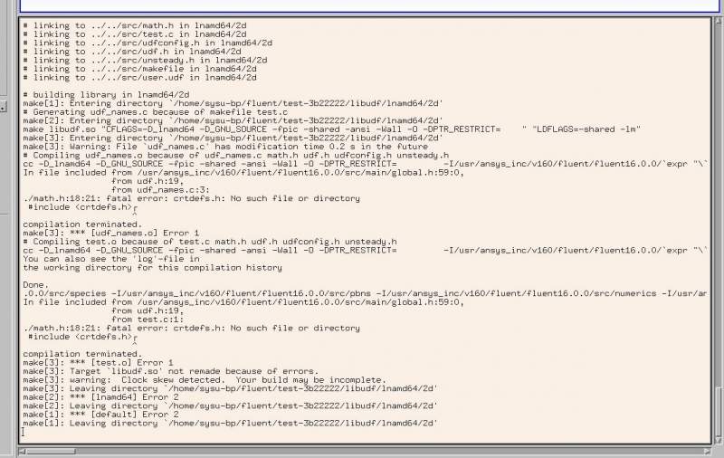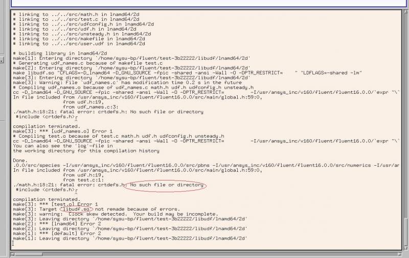 在linux平台下提示的错误为 target 'libudf.so' not remade because of errors.
