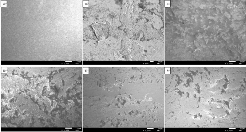 200N加载力,80r/min的转速,单针销盘试验。 A-F添加量分别为0、0.5、1、1.5、2、2.5。这六张是1000倍的扫面图片。 1 通过表面摩擦形貌怎么分析它的磨损性能? 2 金属陶瓷的摩擦磨损性能与其TRS,HV,KIC有关系吗?有的话,关系大不大? 1.jpg |