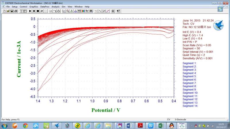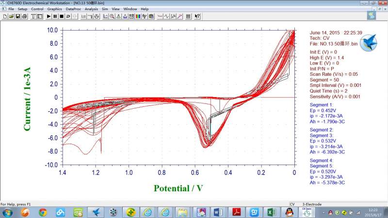 各位哥哥姐姐,小妹有一个实验要请教一下,实验方案如下 1)利用循环伏安法,在碳酸钠溶液中,在金属丝上沉积碳酸银。实验观察到的结果是黑色的,这步反应靠谱吗,怎么可以得到碳酸银呀 ,有什么表征手段 这是我做的循环伏安曲线,第一个是(0.4-1.6v),第二个是(0-1.6)应该怎么选区间 2)大家有做碳酸根电极的吗 ?怎么标定电极 什么样的标准溶液哦 谢谢大家啦 1.jpg 2.jpg |