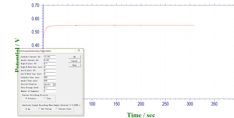 求教:用辰华CHI660C的计时电位法测试电容器的循环充放电曲线