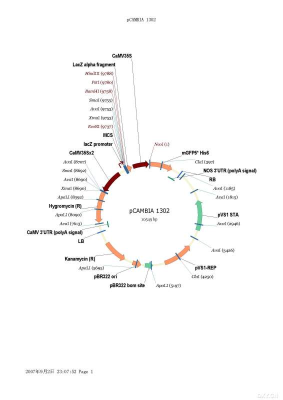 【求助/交流】求构载体高手 赐教构建亚细胞定位载体pCAMBIA1302