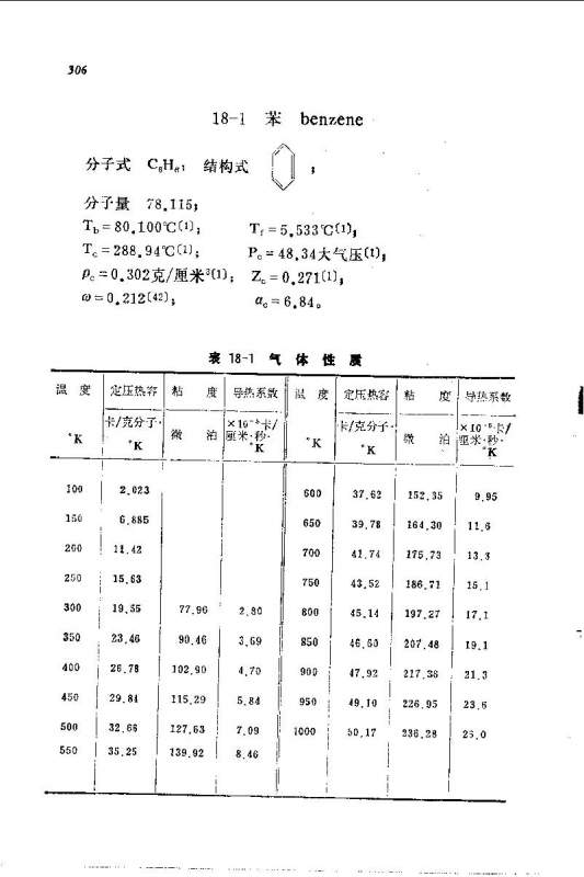 求助苯与甲苯的一些物性参数表