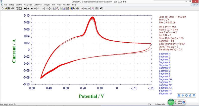三维石墨烯-Co3O4复合电极材料的CV测试