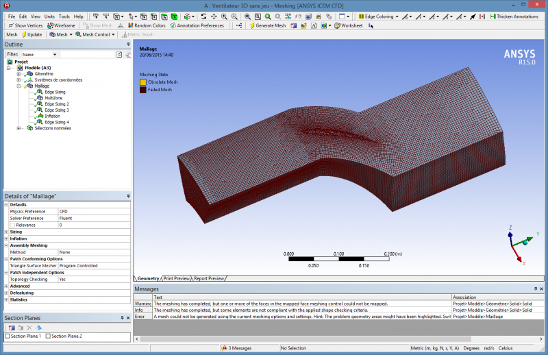 初学ansys建模仿真,叶片流体模型不能正确划分网格,求可能的原因已有2人参与