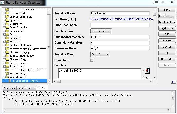 急!在用origin进行非线性拟合怎样创建新的拟合函数?