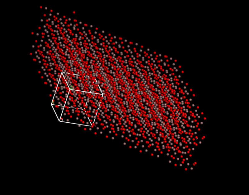 切完表面后更改lattice parameter without keeping fixed coordinates,这样在视图上可以看见我最后要截取的部分,但是这只是假象,导出后它好像会把所有的原子都挤到立方体里面……