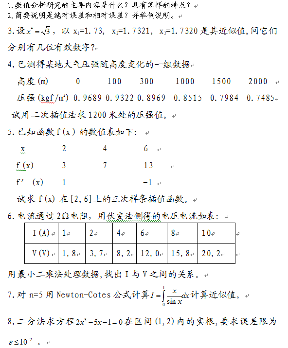 小虫有几道《数值分析》题,想重金求解。希望能得到大神的帮助啊!