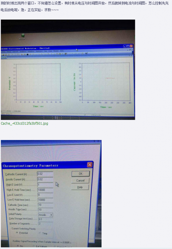【求助】求助,急!电化学工作站 恒电位 恒电流参数设置问题!!