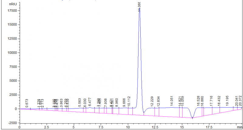 折光检测器出负峰说明溶质的折光度低于流动相。不经常出现,但并不奇怪。在积分参数选项里有一个是“允许负峰”,选了以后负峰也会给出正的积分值。