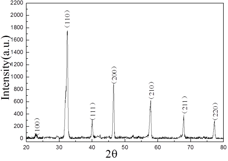 BT、BST和ST的XRD图谱主要的峰值以及对应的角度