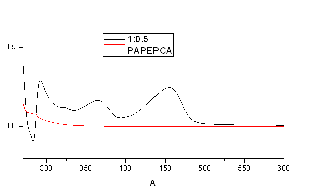 我用图中的聚合物做阴离子识别,在紫外图中,红色的是没有加入阴离子的,在250之后基本是平的,但是加入阴离子之后再300和360先出现吸收峰,而且很高,过一段时间之后这里两个峰强减弱,在450出现新峰,溶液也变成黄色,我想知道在300和360先出现的这两个吸收峰是什么吸收?大侠们快来啊!