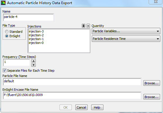 fluent中离散相模拟时,非稳态颗粒跟踪怎样输出每个时间步的颗粒位置等信息?