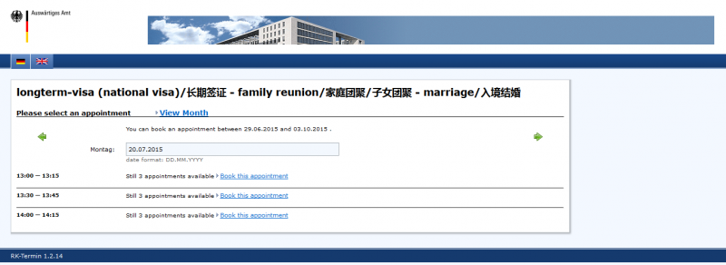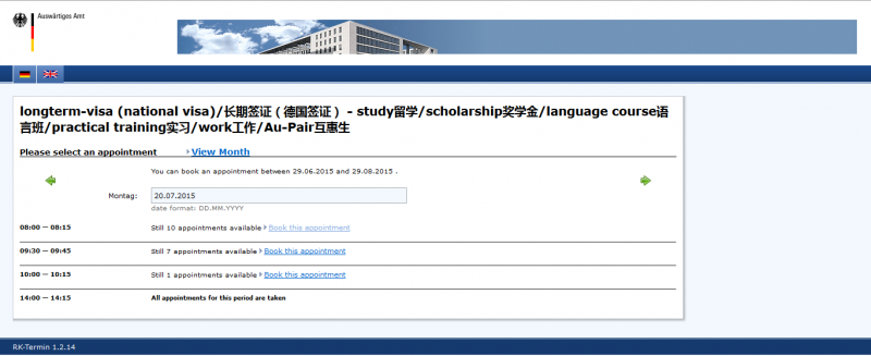 求助德国签证预约问题