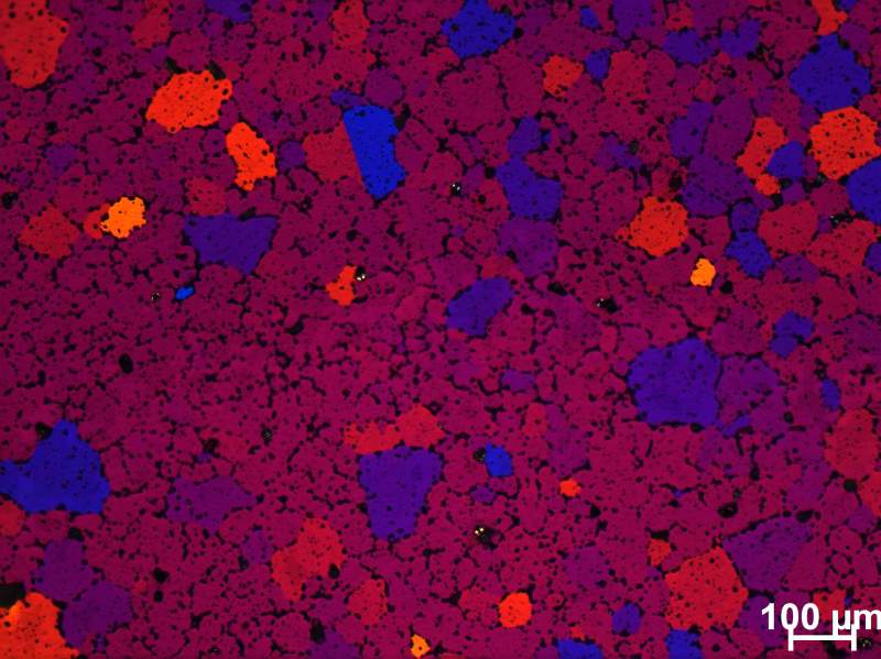 有人知道小弟这样阳极覆膜图片成功吗?我的试样是7A04铝合金挤压变形后在530℃/1h保温后水淬的组织?阳极覆膜不是说不同颜色就代表一个个晶粒吗?为什么我覆膜后有些一大片都是一种颜色呢? 201-0853.jpg 201-0855.jpg |