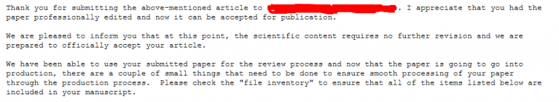当时状态是accept without revision,按照要求提交上去又变成with editor了,邮件回复如下,请问这样是代表接收了吗?