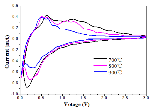 我考察温度对材料电化学性能影响的时候发现,随着煅烧温度升高,CV曲线中的还原峰位减小,而氧化峰位增大(做成扣式电池测试)