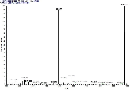 本人做了一个高分辨的质谱,求懂质谱的虫友帮忙分析一下,主要想知道分子量~