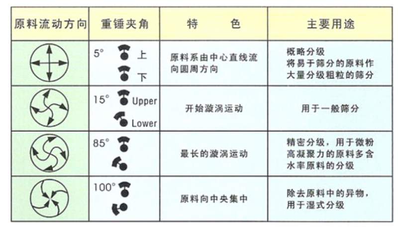 旋振筛(如下图所示),根据使用说明书,调节重锤的夹角,可以改变物料的运动轨迹。 问题:现在我想改变物料的旋转方向(下图所示),怎么办?(物料在筛体中沿壁面顺时针旋转,如何能实现逆时针旋转),希望聪明的大家想想办法,或者有类似经验的朋友,分享讨论一下,谢谢! 补充:改变电机转向,物料运动轨迹方向不会改变。。。 3.jpg 1.jpg 2.jpg 6.jpg 7.jpg |