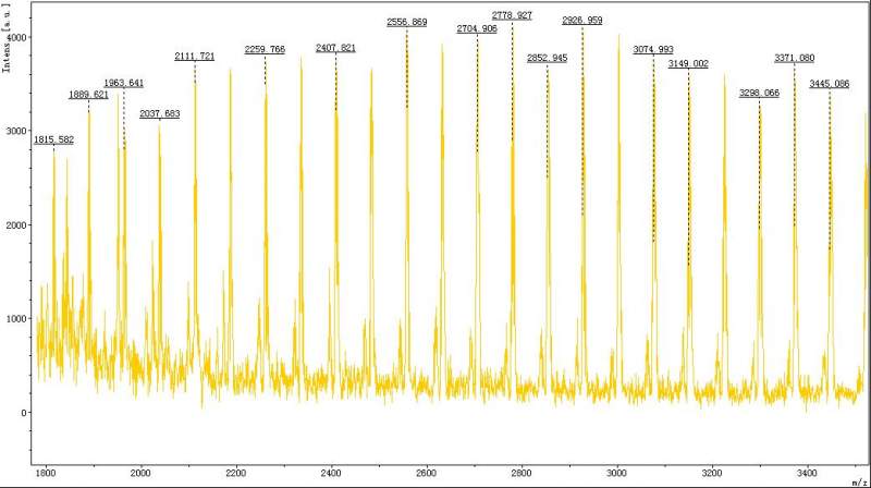 合成了一个聚合物,聚合物的单元分子量是275,核磁也确认了没有问题。做了好多次的MALDI-TOF, 做出来的间隔总是74左右,求高手指导解释