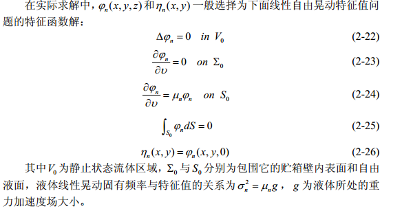 如图所示,两个函数分别是速度势函数和波高函数傅里叶展开后对应的体模态和面模态。 问题是1:何为线性自由晃动特征值?特征值在这里是什么意思。。(本科机械,对流体不太了解) 2:这个方程组怎么解?看相关文献好像是用数值方法解,但没找到完全对应的。 期待回答,能讨论下也行,谢谢! 9@0[CP3T6MEYG1)ZS0M9TZI.png |