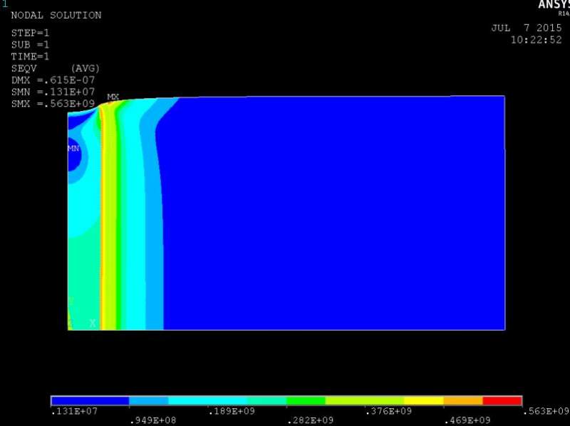 建了个含不同材料区域的模型,仿真后发现normal stress和shear stress都是连续的,但von Mises stress在界面处产生了突变,请问这正常么?如果不正常那是什么原因导致的呢?请大神指教 scl pl |