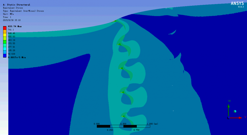 看不出哪里突变,只是 MAX 标识附件变化快一些而已,似乎有一点应力集中。因为别人不了解你的具体情况,所以是否正常需要你自己判断。