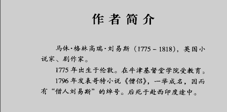 【转载】《僧侣》[英]马休-格林高瑞-刘易斯