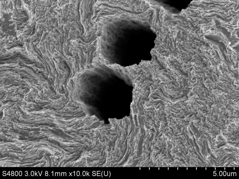 各位金相分析高手,我最近苦味酸盐酸酒精溶液腐蚀了301不锈钢弹簧丝,扫描电镜照片如图所示,请大家帮忙看一下,为什么会出现空洞,这个空洞是均匀分布的,这是什么情况