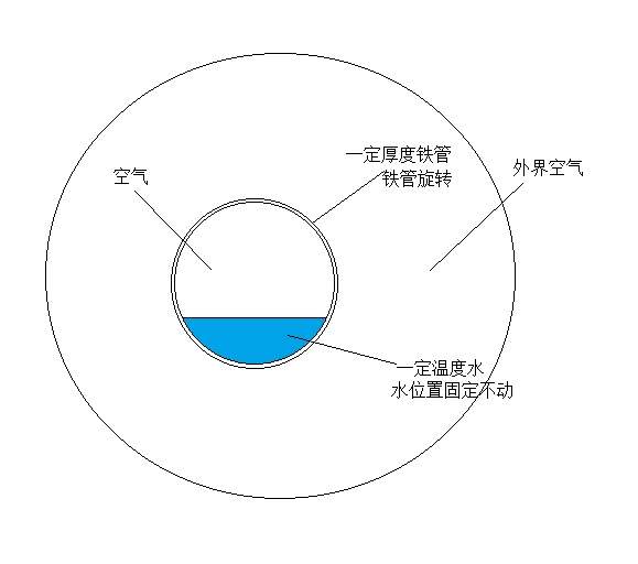 想做一个滑移网格仿真,模型如下:一个固定壁厚的铁管在旋转,管内有高温水流动,水不满,可以假定水的位置不动,如下图,求铁管温度分布随时间变化。