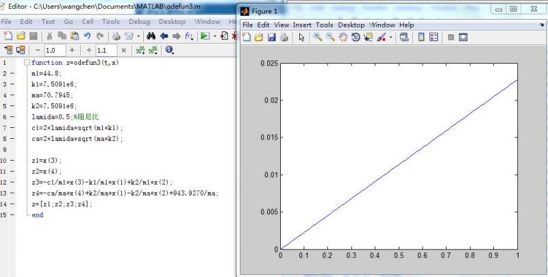 小弟做轮胎动力学的,得到振动方程如图所示,matlab程序和计算结果如图所示。