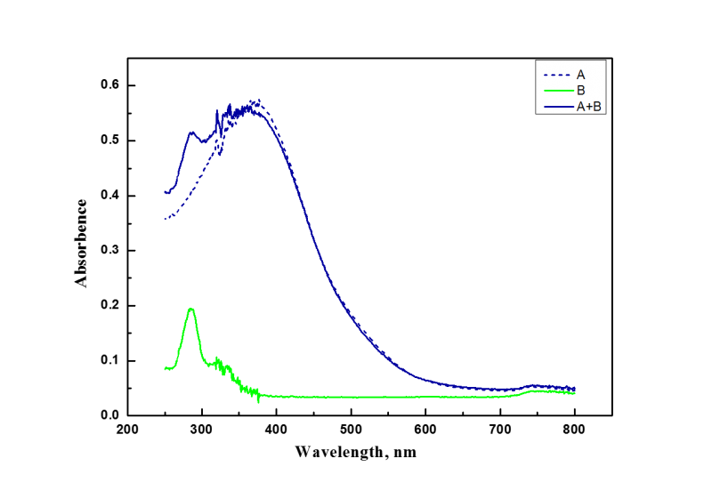 你好,我做吸收光谱的目的就是想弄清楚“是A对B的吸光度造成了遮蔽,还是A增强了B的吸光度?”